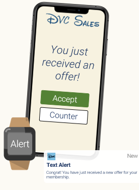 In addition to email, you may also receive text alerts and mobile push notifications if you’ve enabled those features in your profile. This helps you stay informed no matter where you are. Inside your DVC Sales dashboard, the Journal page updates in real time to reflect your offer’s current status — whether it has been viewed, accepted, declined, countered, or expired. Each action is time-stamped so you always have a clear record of progress.